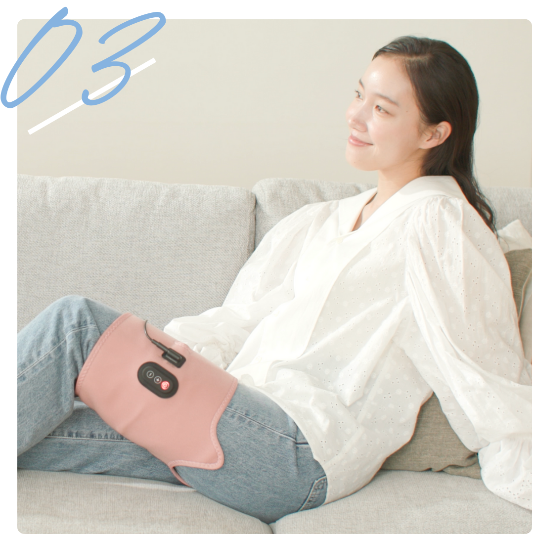 ふくらはぎだけでなく、太ももにも対応しているのがイタケアの強み。 しっかりフィットするバンドで、日々のケアを簡単に取り入れましょう。
